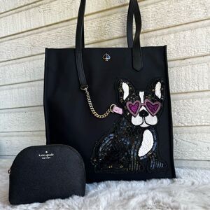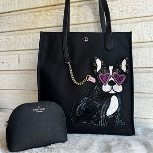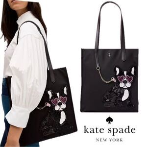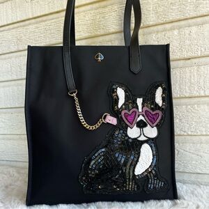 KATE SPADE Black Kitt Francois Bulldog Large North South Tote Laptop Work Bag