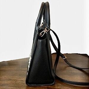 KATE SPADE Black Leather Top Handle Crossbody Satchel With Woven White Leather Diamond Argyle Pattern