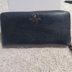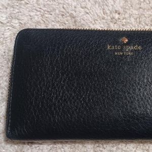 KATE SPADE Black Leather Lacey Accordion Cobble Hill Zip-Around Wallet