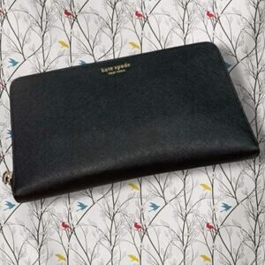 KATE SPADE Black Saffiano Leather Zip Around Wallet In Excellent Condition