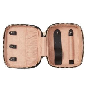 Be appropriately accessorized when you're out of town by packing your jewelry in this lustrous leather case. • Brand new condition with tags & never worn • Size: 4.25" W x 3.6" H x 2.5" D • Top zip-around closure • Leather • Retail: $140