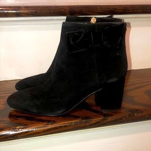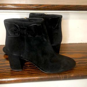 KATE SPADE Black Suede Zip Up Ankle Boots with Bows Sz 8 NWT