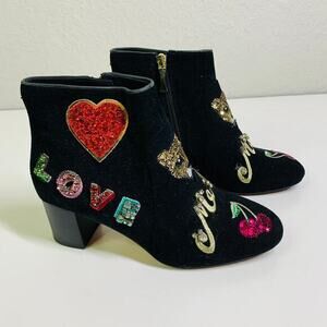 KATE SPADE Boots Liverpool Suede Ankle Love Cat Meow Cherry Sequin Embellished