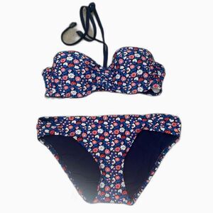 KATE SPADE Botany Bay Floral Print Bikini 2 Piece Swimsuit Bandeau Medium Preppy