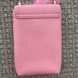 BRAND NEW WITH TAGS. Rococo Pink. A phone crossbody with magnetic-snap flap closure for easy access to cell phone. Crafted of rich Pebble leather with a chain and leather strap for shoulder or crossbody wear. Features 3 interior credit card slots for added storage.