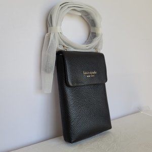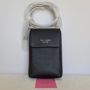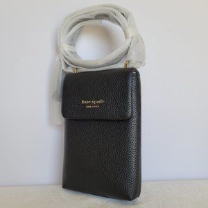 KATE SPADE Bradley North/South Pebbled Leather Phone Crossbody- Black color