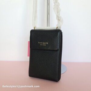 KATE SPADE Bradley North/South Pebbled Leather Phone Crossbody- Black color πβ