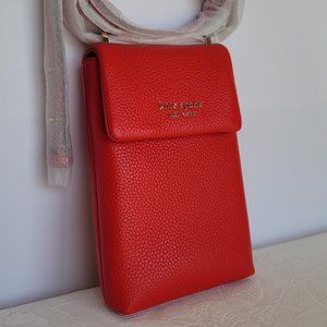 KATE SPADE Bradley North/South Pebbled Leather Phone Crossbody- Heirloom Tomato
