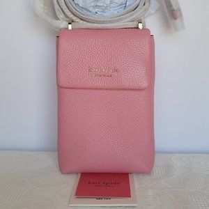 KATE SPADE Bradley North/South Pebbled Leather Phone Crossbody- Rococo Pink