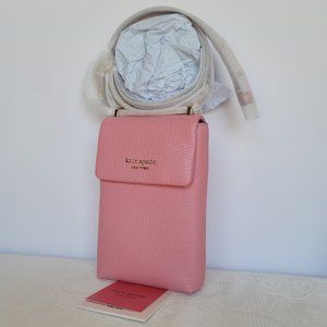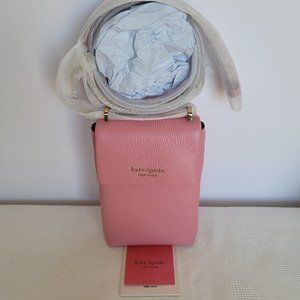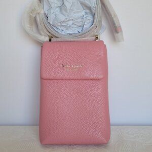 KATE SPADE Bradley North/South Pebbled Leather Phone Crossbody- Rococo Pink