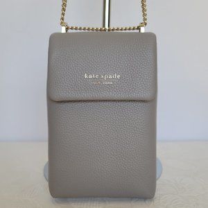 KATE SPADE Bradley North/South Pebbled Leather Phone Crossbody-True Taupe color