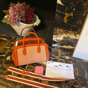 KATE SPADE CROSSBODY SATCHEL KNOTTS CANVAS LEATHER SIZE MEDIUM DRIED APRICOT