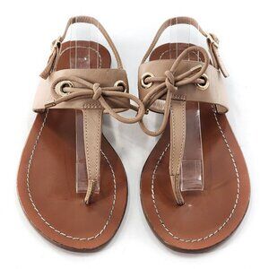 KATE SPADE Carolina Leather Thong Sandals Bow Tan Buckle Closure Slingback Flat