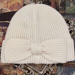 KATE SPADE • Cream Hats Off Bow Beanie Cap Hat