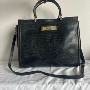 KATE SPADE Croc Black Leather Bow Satchel Tote Handbag Knott Dumpling Madison