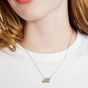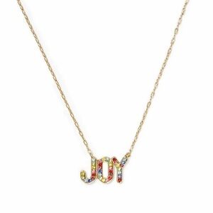 Brimming with the label's innate heartwarming sentiment, Kate Spade’s rainbow Joy pendant features a gold-tone cable chain and is anchored with a pendant stating the word 'joy' in multicoloured embellishments.
