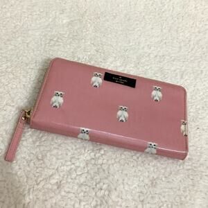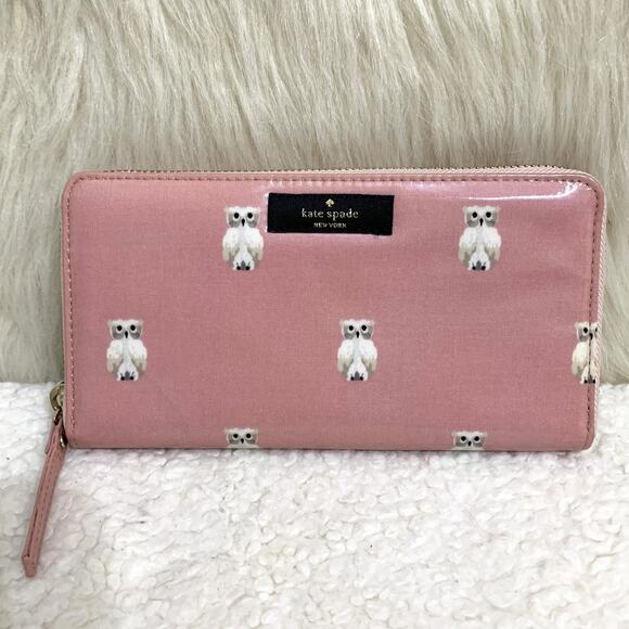 KATE SPADE Daycation Pink PAINTERLY OWL Zip Around NEDA Wallet