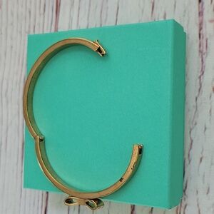 Kate Spade gold bangle bracelet with rhinestone bow.