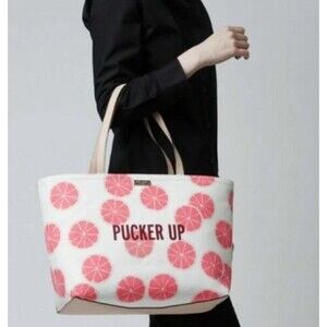 KATE SPADE Flights Of Fancy Francis Pucker Up Grapefruit Canvas Tote Purse