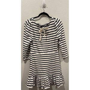 KATE SPADE Floral White Black Striped Fit And Flare Mini Dress. Size L