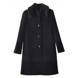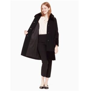 KATE SPADE • Fur Collar Velvet Trim Coat