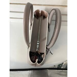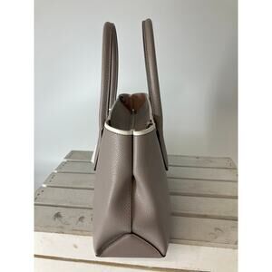 KATE SPADE GRAY PEBBLED LEAHTER WHTIE TRIM SMALL HANDBAG