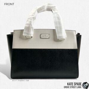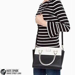 Kate Spade Grove Street Lana Satchel Leather Handbag in Black / Cream with Adjustable Crossbody Strap