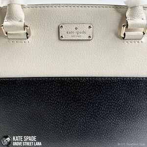 Kate Spade Grove Street Lana Leather Satchel Bag in Black + Cream with Adjustable Crossbody Strap