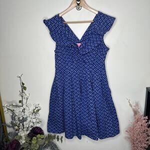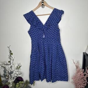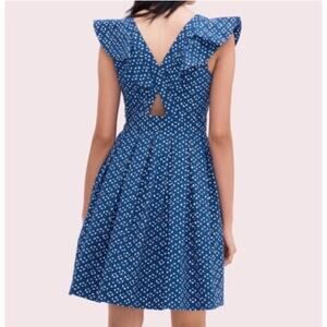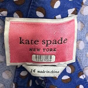 KATE SPADE Geo Dot Cotton Poplin Flounce Dress Blue Sz 14 $348 {3M13}