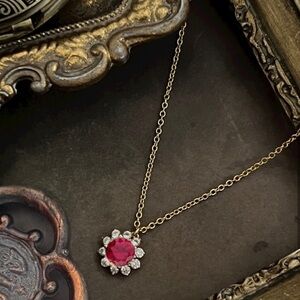 KATE SPADE • Gold Sunny Garnet Red Halo Necklace