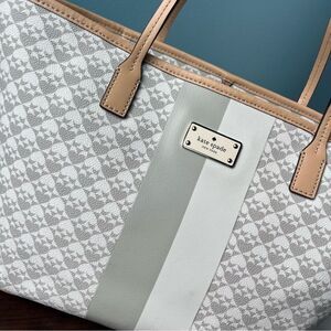KATE SPADE Grey Margarita Knott Houndstooth Stripe Tote Shoulder Bag Street
