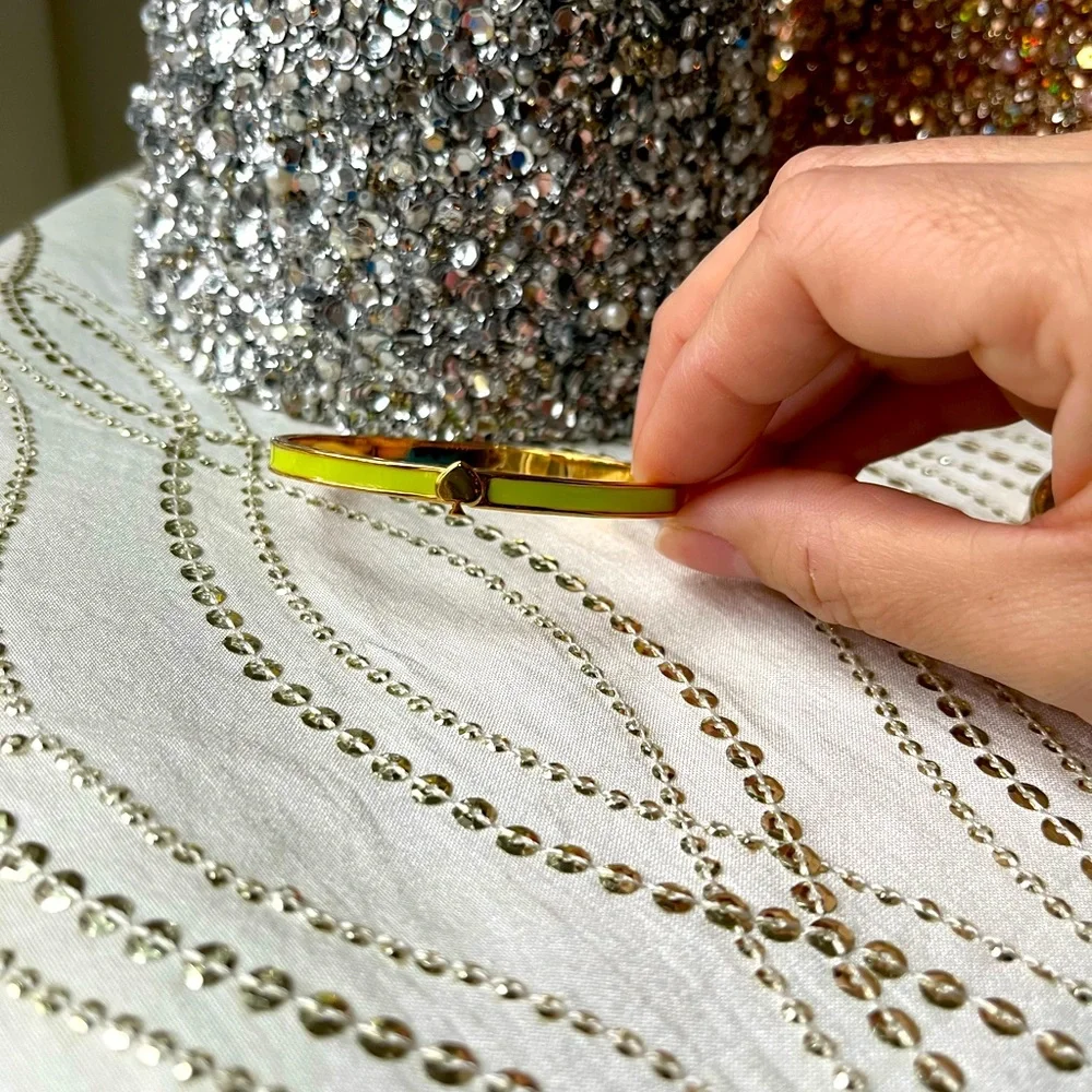 KATE SPADE HERITAGE BANGLE HINGE BRACELET IN YELLOW-GREEN