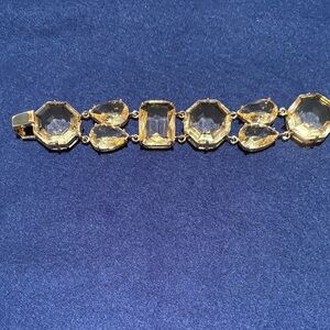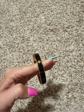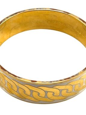 Pretty yellowish green enamel hinged bangle. Gold tone.