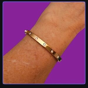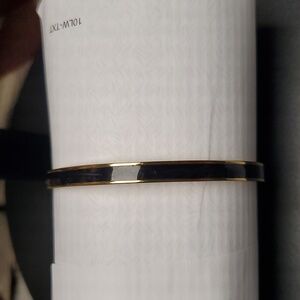 Elegant gold bangle bracelet with a striking blue enamel inlay. Perfect for adding a pop of color to any outfit.