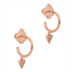 Dainty heart charms glint with pavé beneath the huggie hoop design of these Kate Spade New York earrings.