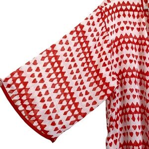 KATE SPADE Heart Print Kimono Chiffon Robe Red Belted Size L/XL