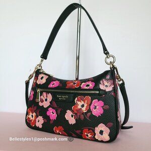 KATE SPADE Hudson Fall Poppies Print Leather Convertible Crossbody-Black mult🎈⭐