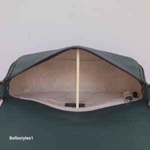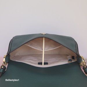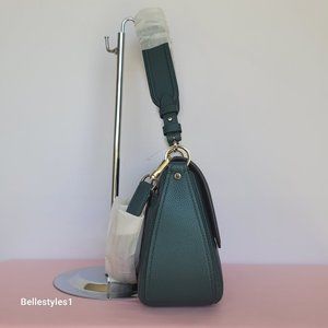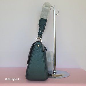 BRAND NEW WITH TAGS. Artesian Green color. A stylish shoulder bag with flap-over closure with a roomy interior to carry your essentials. Designed with a top handle and a detachable crossbody strap for versatile wear, crafted of soft pebbled leather. Features a back zip pocket for easy access and added storage.