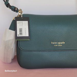 KATE SPADE Hudson Pebbled Leather Medium Flap Convertible Shoulder Bag-Artesian⭐