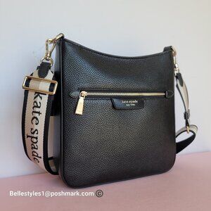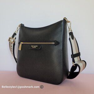 KATE SPADE Hudson Pebbled Leather Messenger Crossbody Bag- Black color🎈
