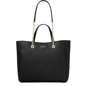 Kate Spade's triple compartment shoulder tote bag is the epitome of class. The dual top handles and the dual gold link / leather straps makes this bag very convenient. Basic black assures this bag will always be in style. It exudes elegance.