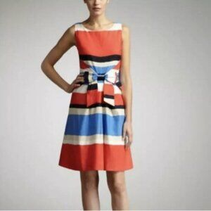 KATE SPADE Jillian Linen Blend Striped Bow-Waist Midi Dress Women's Size 6