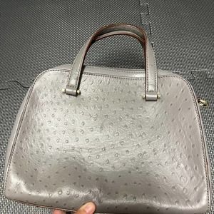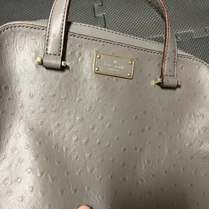 KATE SPADE KAY STREET OSTRICH EMBOSSED SMALL FELIX GREY LEATHER SATCHEL