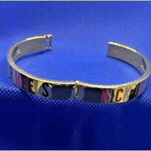 KATE SPADE Kick Up Your Heels Hinged Bangle Bracelet Gold tone Pink Purple 7"