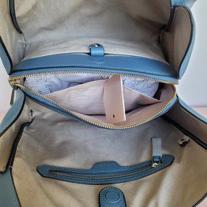 BRAND NEW WITH TAGS. Manta Blue color. A trendy and elegant style for easy, everyday organization to carry your essentials with a shoulder bag that features a triple compartment crafted from soft pebbled leather with suede on the side panels.