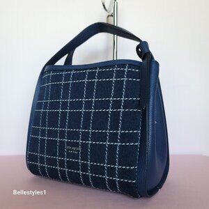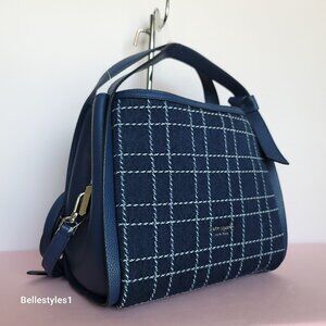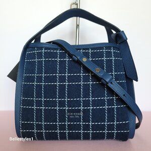 KATE SPADE Knott MEDIUM Denim Check & Leather Crossbody Tote- Indigo Multi⭐