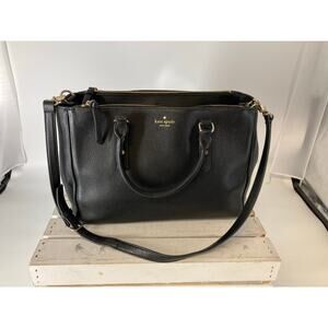 KATE SPADE LARGE BLACK PEBLED LEATHER WOMENS SHOULDER BAG