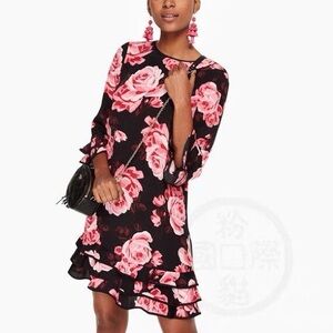 KATE SPADE LONG SLEEVE RUFFLE ROSE DRESS.