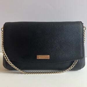KATE SPADE Black Leather Bag with Crossbody Strap & Gold Chain