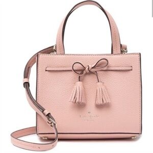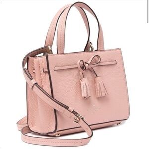 KATE SPADE Leather Hayes Small Tasselled Bow Satchel Pink Roseycheeks Crossbody